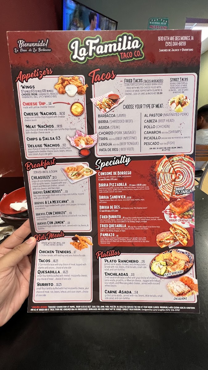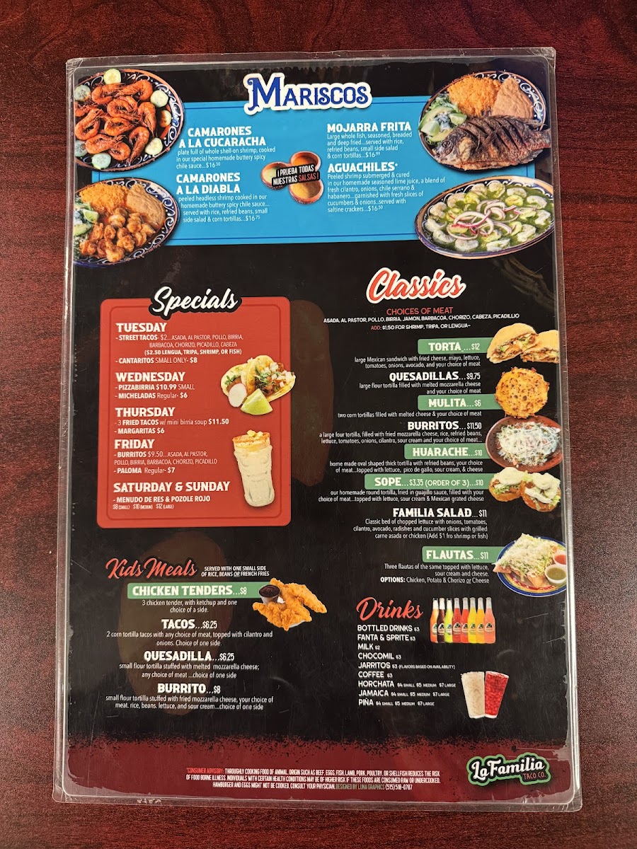 Welcome to Tacos La Familia, a hidden gem nestled in Des Moines, IA, where authentic Mexican flavors come alive. This vibrant eatery invites diners to indulge in a thoughtfully curated menu that showcases the rich culinary heritage of Mexico.